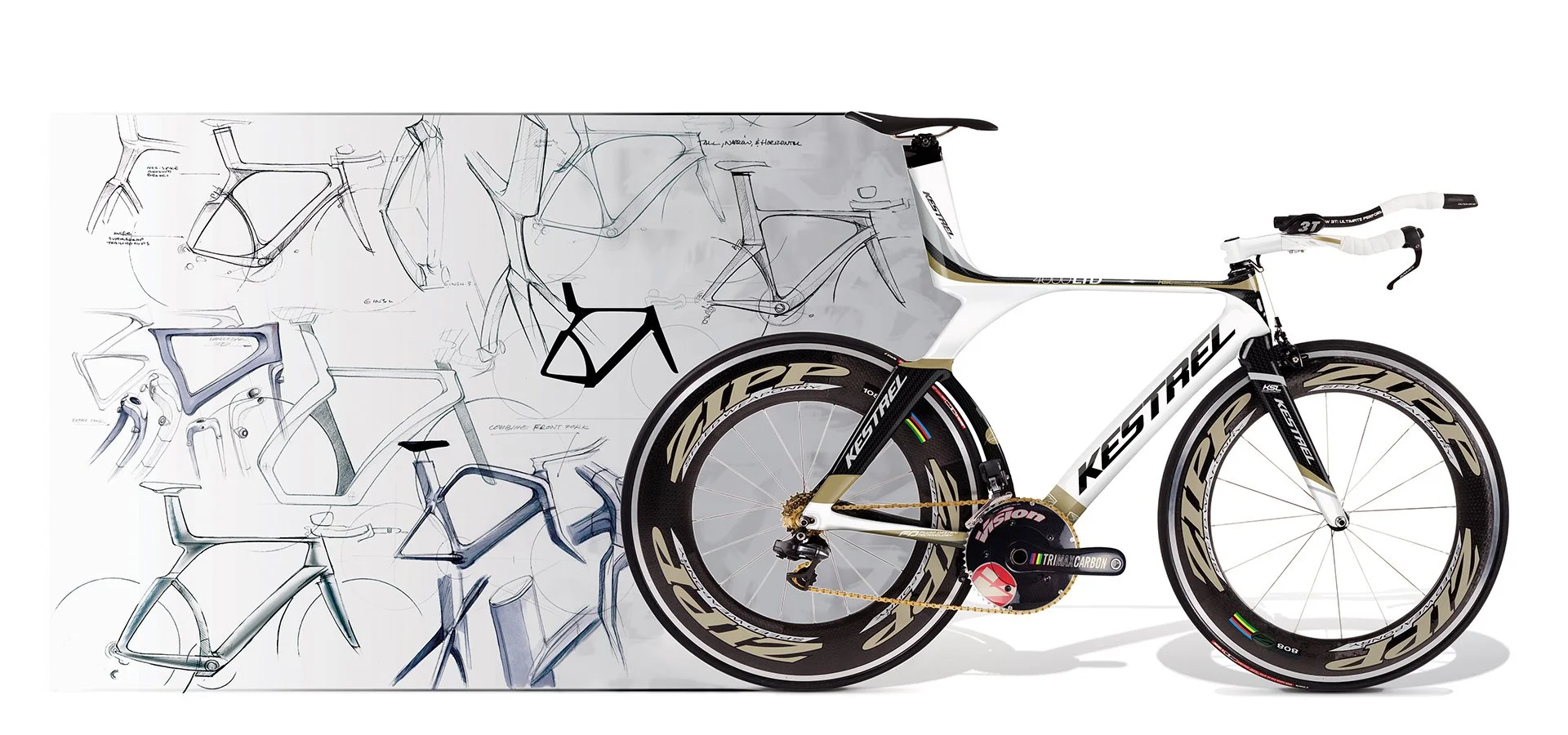 The first bike Anvil designed for Kestrel was for the premium triathlon competition market. The design needed to look bold and different while still adhering to the confines of UCI regulations. We chose a design that used knife-like edges, accentuated joints and notched-out detailing to create a profile that is bold, and instantly recognizable. The final streamlined design captures the striking visual of air flowing fast and smoothly over complex surfaces. When the Kestrel 4000LTD debuted, wind tunnel tests proved it was the most aerodynamic frame set on the market.